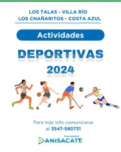 ACTIVIDADES DEPORTIVAS 2024 El Área de Deportes de la Municipalidad de Anisacate informa que ya se encuentran abiertas las inscripciones a todas las actividades deportivas