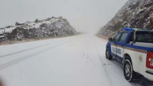 El Camino de las Altas Cumbres se encuentra cerrado al tránsito este lunes por la presencia de hielo y nieve en la carpeta asfáltica y
