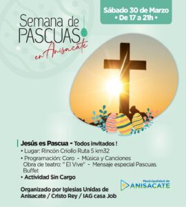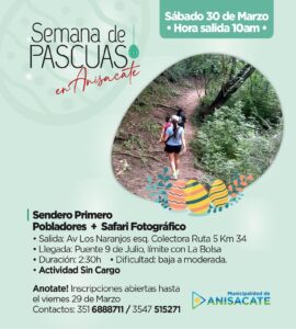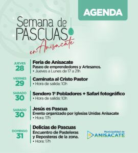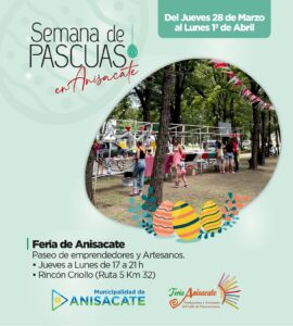 La Municipialidad de Anisacate a través de la Dirección de Turismo informa a toda la comunidad, el cronograma de actividades para disfrutar en familia esta Semana Santa 2024.